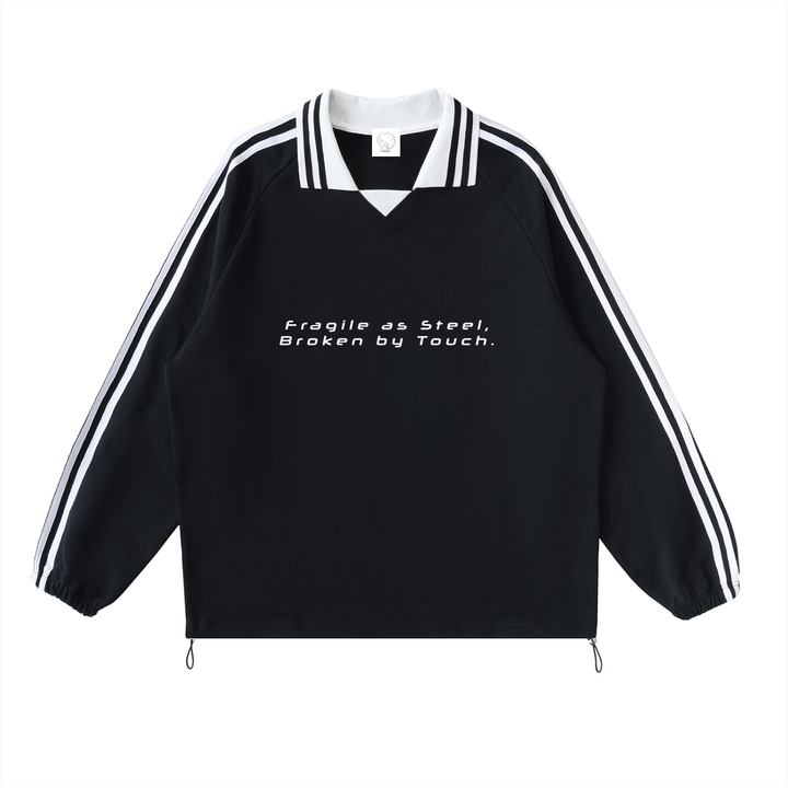 Contrast Striped Lapel Collar Sweatshirt - Steel Mirage